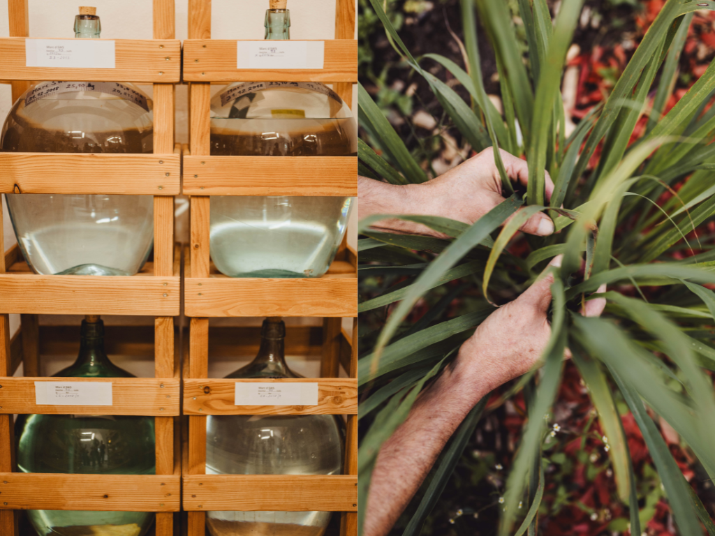 In unserer Schatzkammer, nur auf Anfrage sichtbar, lagern wir Destillate von Pflanzen wie Königskerze oder Mariendistel aus dem Gurktal. Besonders spannend sind unsere fassgelagerten und zehn Jahre gereiften Kräuterdestillate sowie eigene Versuche im Kräuterbeet.